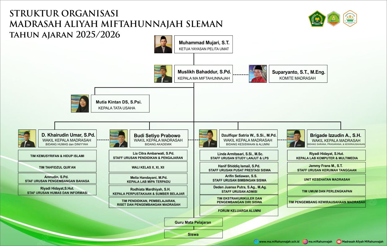 Kami siswa-siswi MA Miftahunnajah bertekad untuk selalu: 1. Berakidah lurus, beribadah dengan benar, dan berakhlak mulia. 2. Berbadan sehat, berpengetahuan luas dan bermental pejuang. 3