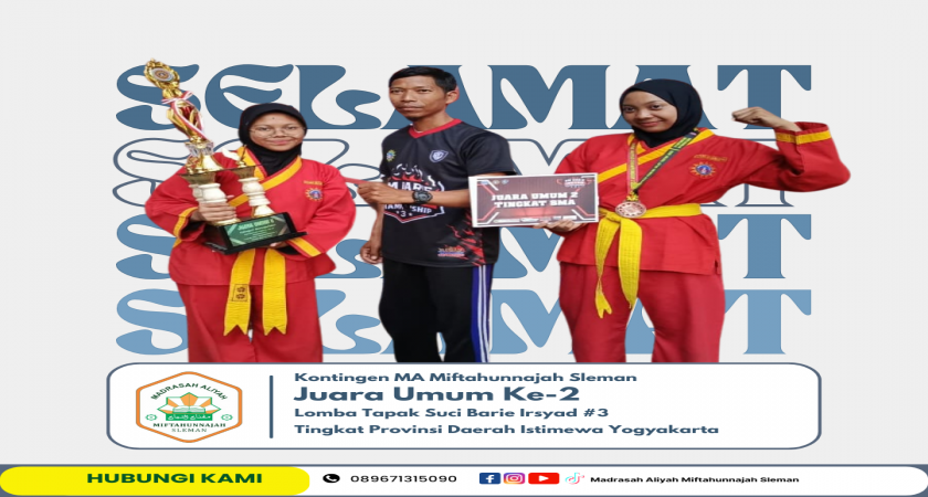 Sleman, 15 September 2025 – Sebuah prestasi membanggakan kembali ditorehkan oleh keluarga besar MA Miftahunnajah Sleman. Dalam ajang Lomba Tapak Suci Barie Irsyad #3 Tingkat Daerah Istimewa Yogyakarta yang diselenggarakan pada 13–14 September 2025, kontingen Miftahunnajah berhasil meraih Juara Umum Ke-2, sebuah pencapaian yang membuktikan kualitas sekaligus daya juang para siswa dalam bidang bela diri Tapak Suci.