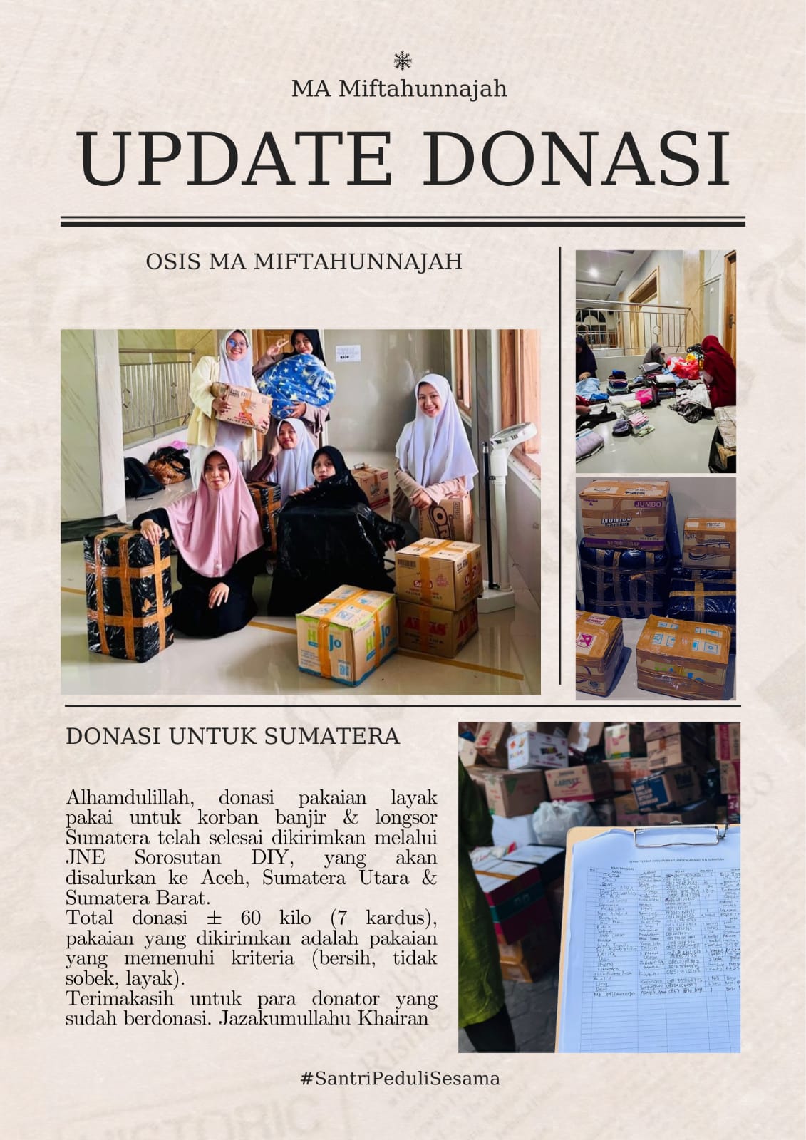 MA Miftahunnajah Sleman Sukses Galang Donasi Pakaian Layak Pakai untuk Korban Bencana di Sumatera
