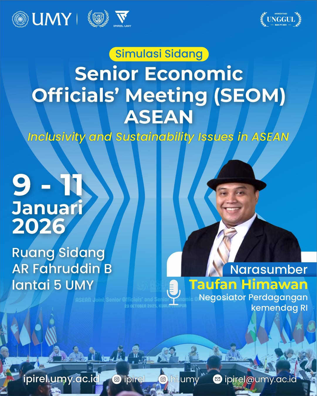 Lima santri terpilih dari MA Miftahunnajah Sleman resmi mengikuti ajang bergengsi Simulasi Sidang Senior Economic Officials' Meeting (SEOM) ASEAN yang diselenggarakan oleh IPIREL Universitas Muhammadiyah Yogyakarta (UMY) pada 9-11 Januari 2026.
