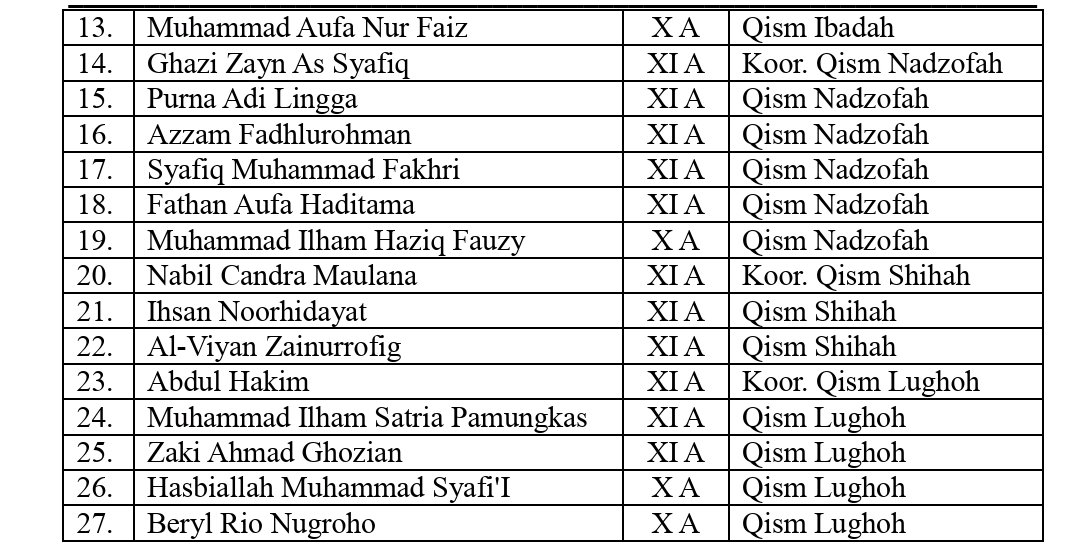 Lebih dari itu, OSAMI diharapkan menjadi salah satu wadah strategis latihan kepemimpinan santri, melengkapi organisasi-organisasi kepemimpinan yang telah ada sebelumnya, seperti OSIS, Dewan Ambalan, serta Forum Ketua Ekstrakurikuler yang saat ini berada di bawah tanggung jawab bidang Kesiswaan. Melalui OSAMI, santri memperoleh ruang pembelajaran kepemimpinan yang khas dalam konteks Kepesantrenan, sehingga mampu melahirkan kader-kader santri yang berintegritas, bertanggung jawab, dan siap mengabdi.