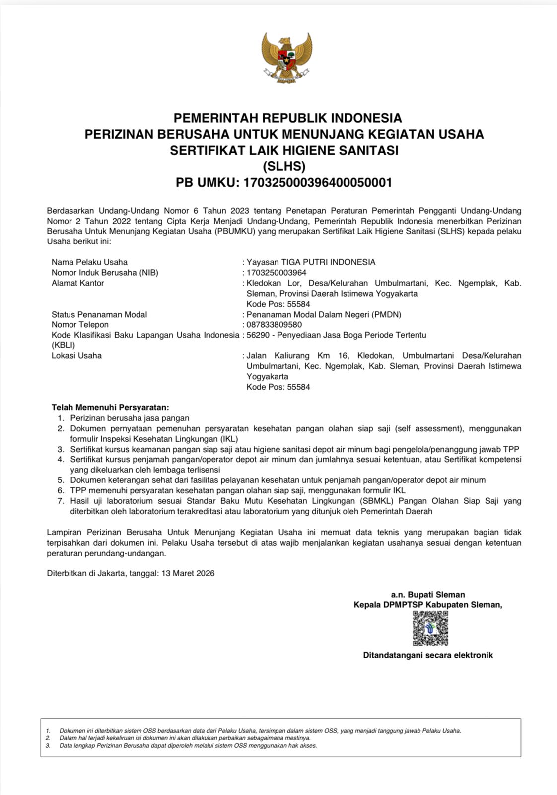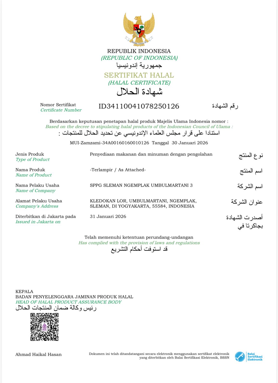 SPPG yang diketuai oleh Radya Rafi Setyawan, S.H. ini memiliki pengalaman lebih dari 10 tahun di bidang katering dan restoran. Dengan kapasitas produksi yang besar setiap harinya, SPPG Ngemplak 3 telah terbukti mampu menjaga kualitas, kebersihan, dan konsistensi layanan dalam skala besar.